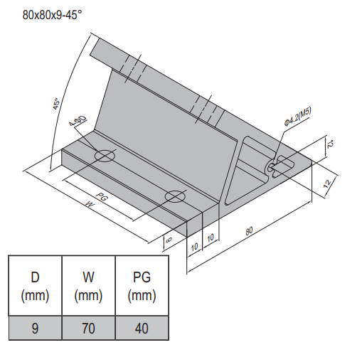 This product is a AP Bracket 80×80-PG40-80 (Set). The bracket is a product that allows you to connect two elements to each other at a specific angle. The brackets come in a very wide variety of angles to suit multiple applications, based on what the consumer might need. It offers strength and durability to angular connections that often prove difficult otherwise. The brackets are made of anodized aluminum and strengthens angular connections while also offering a more finished or professional look. This product includes a fastening set.