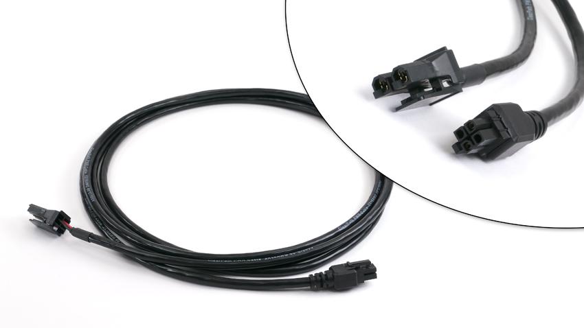 Cable used to supply bus power from a DC power supply to a ClearPath motor. The Molex end connects to the ClearPath motor; the Sabre end connects directly to a Teknic IPC-5 or IPC-3 power supply, or to a or POWER4-HUB power distribution hub, but can be cut off if you intend to wire it to another supply.